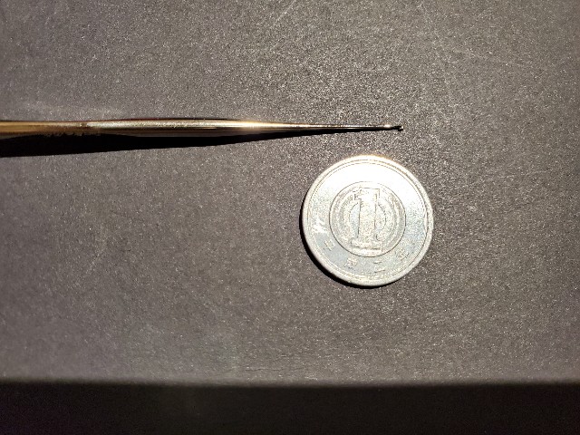 かぎ針と糸を徐々に徐々に細くしていき